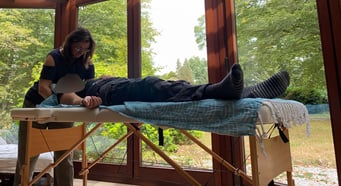 Il ne s'agit cependant pas d'un massage.  Le 'patient' est couché sur une table de massage le plus souvent.